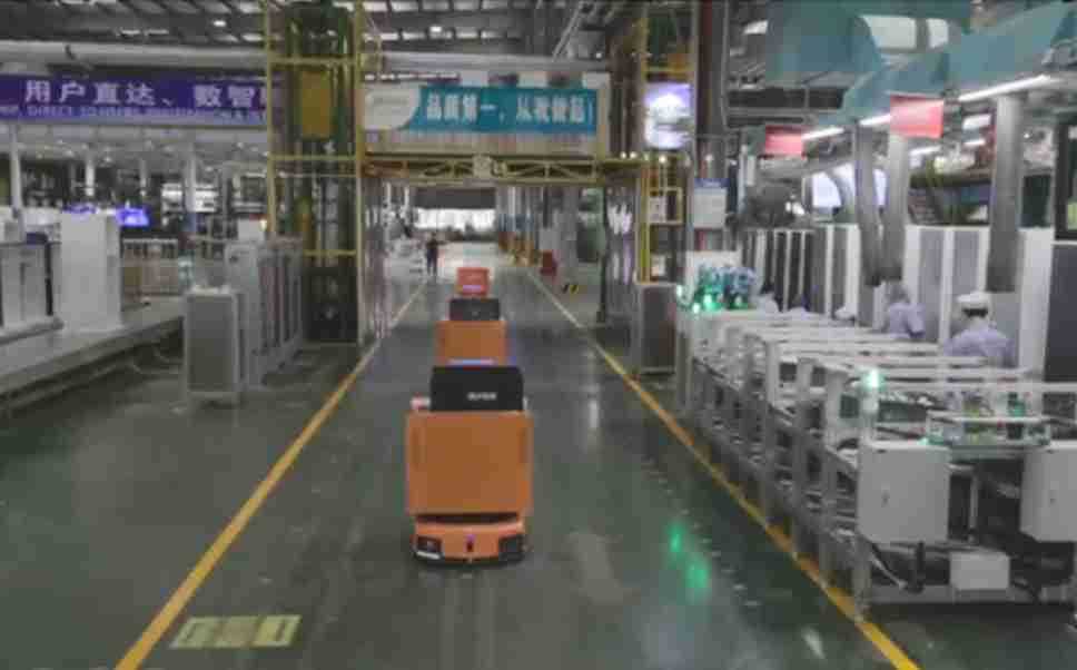 为车载冰箱物流配送打造的智能解决方案,,,,包含产中物流通过潜伏举升AMR搬运至线边,,,,产后成品物流智能仓储,,,,流程包含产中物流智能齐套入库,,线边安灯叫料AMR智能配送至线边,,,成品入库、、、出库,,,通过无人堆高车机器人,,,智能仓储管理替代人工作业管理,,,,实现更高存储、、、、更高效率、、、、更具柔性化的解决方案。。。。